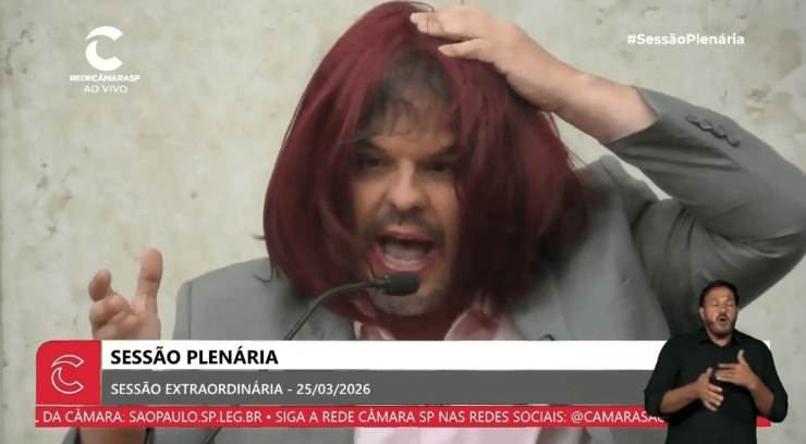Vereador de SP passa batom e usa peruca durante protesto do PL da Misoginia