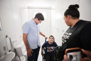 “O Casa Sem Barreiras foi pensado para entrar na casa das pessoas usuárias de cadeira de rodas e tornar esse espaço mais acessível. Neste caso, além do material, a Defesa Civil também entra com a mão de obra, porque é uma ação muito delicada. Hoje realizamos a terceira entrega desse programa, com intervenções de acessibilidade em toda a casa, especialmente no banheiro, que foi totalmente reformado, o que traz mais dignidade e facilidade para o dia a dia das pessoas”, contou Alexandre Rebêlo, secretário de Ordem Pública e Segurança.